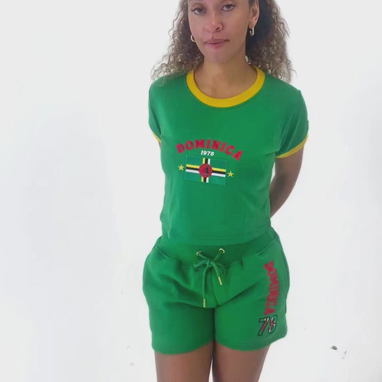 These Dominica Shorts are a fun and fashionable piece, featuring a playful cut and an embroidered Dominica flag with the year of independence. Perfect for showing off your pride in style, whether you're lounging or out and about.