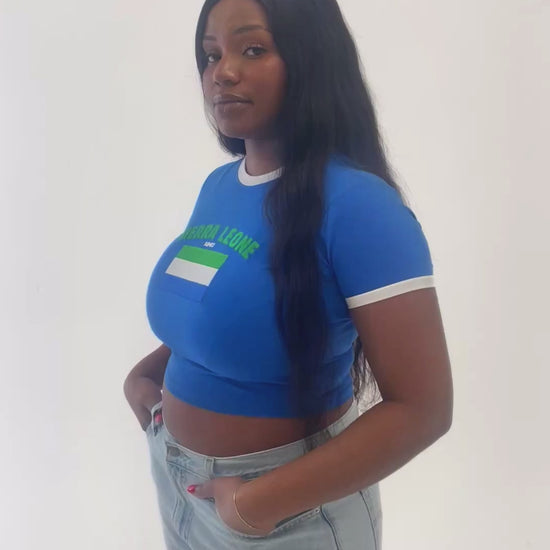 This Sierra Leone Crop Top is a stylish addition to your wardrobe, featuring an embroidered Sierra Leone flag and year of independence on the front.