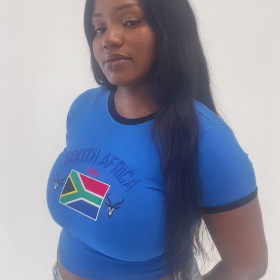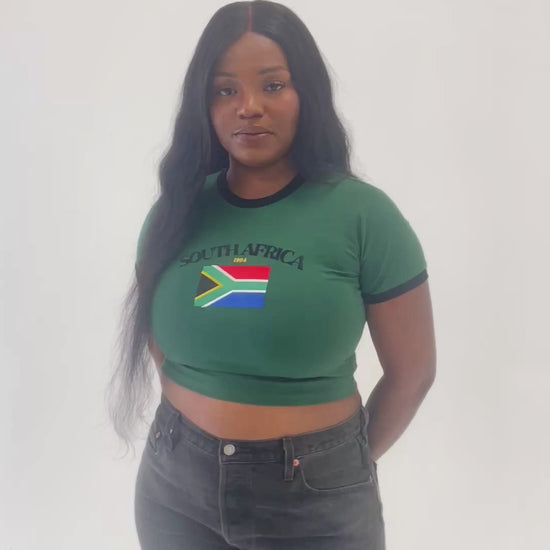This South Africa Crop Top is a stylish addition to your wardrobe, featuring an embroidered South Africa flag and year of independence on the front.