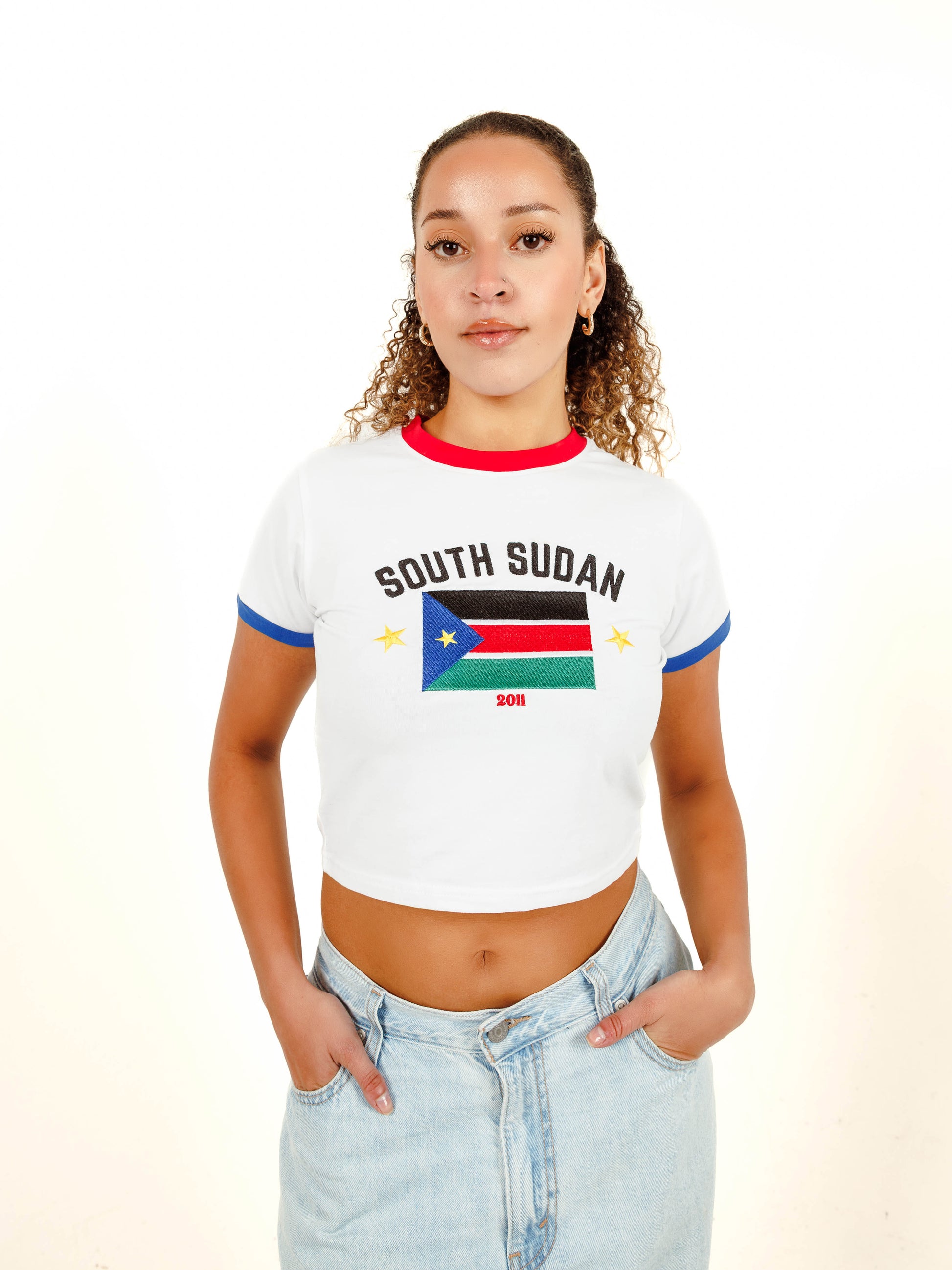 This South Sudan Crop Top is a stylish addition to your wardrobe, featuring an embroidered South Sudan flag and year of independence on the front.