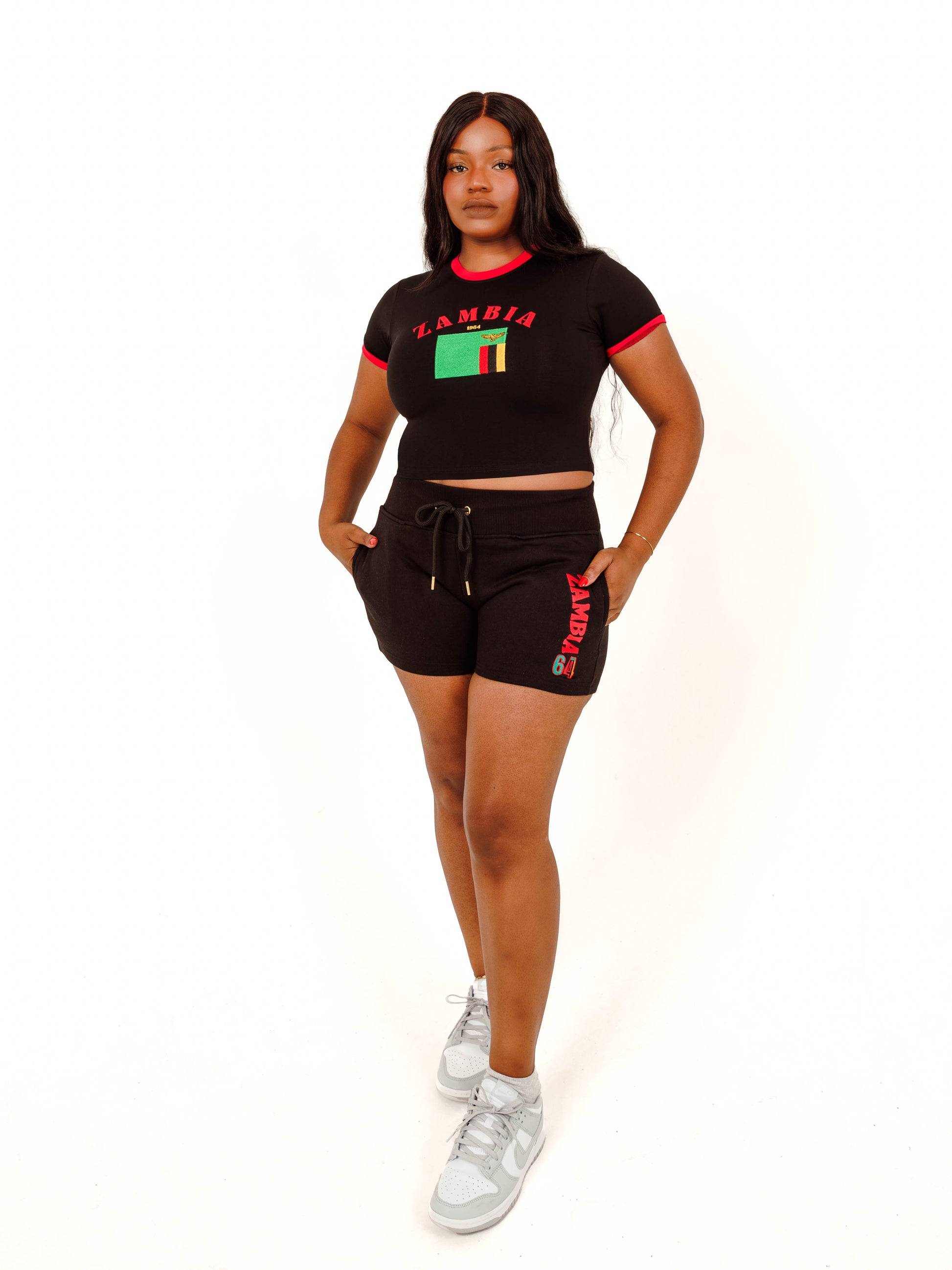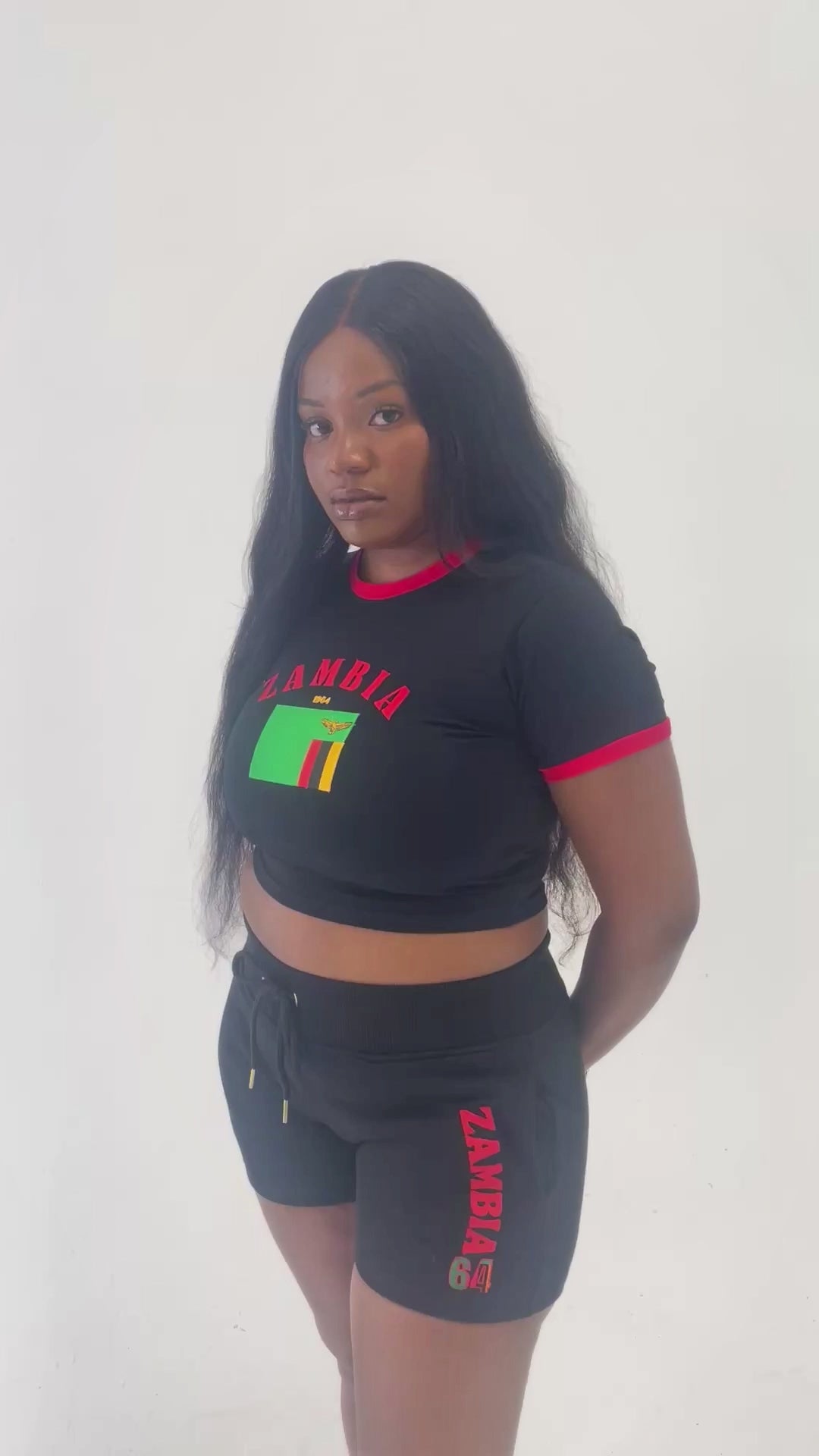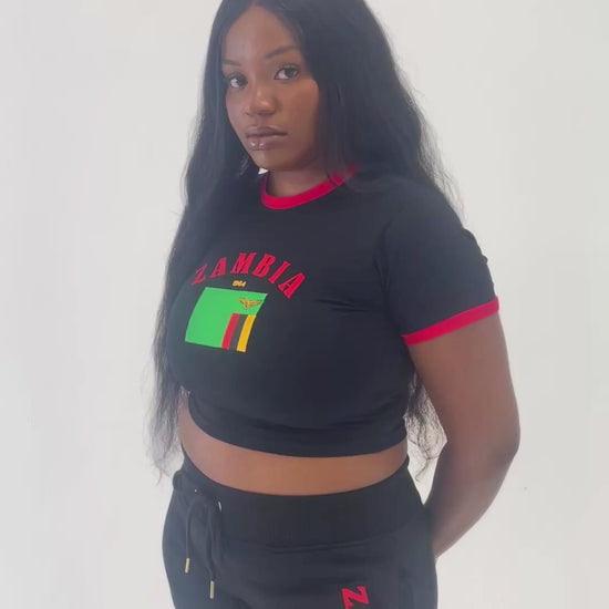This Zambia Crop Top is a stylish addition to your wardrobe, featuring an embroidered Zambia flag and year of independence on the front.