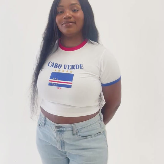 Stylish crop top featuring embroidered Cabo Verde flag and year of independence