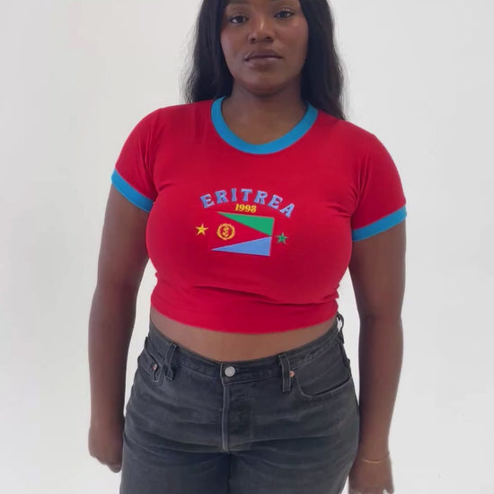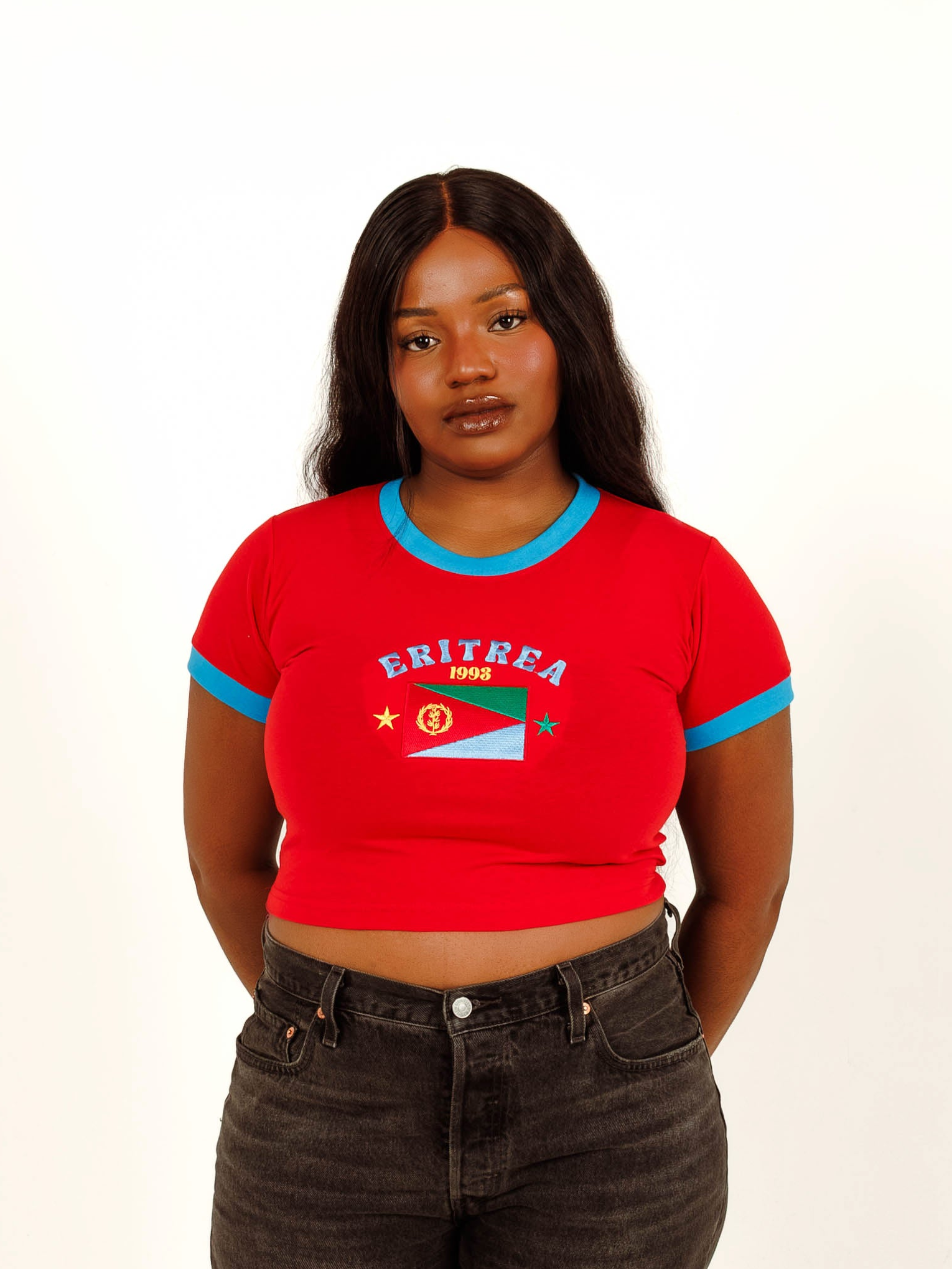 This Eritrea Crop Top is a stylish addition to your wardrobe, featuring an embroidered Eritrea flag and year of independence on the front.