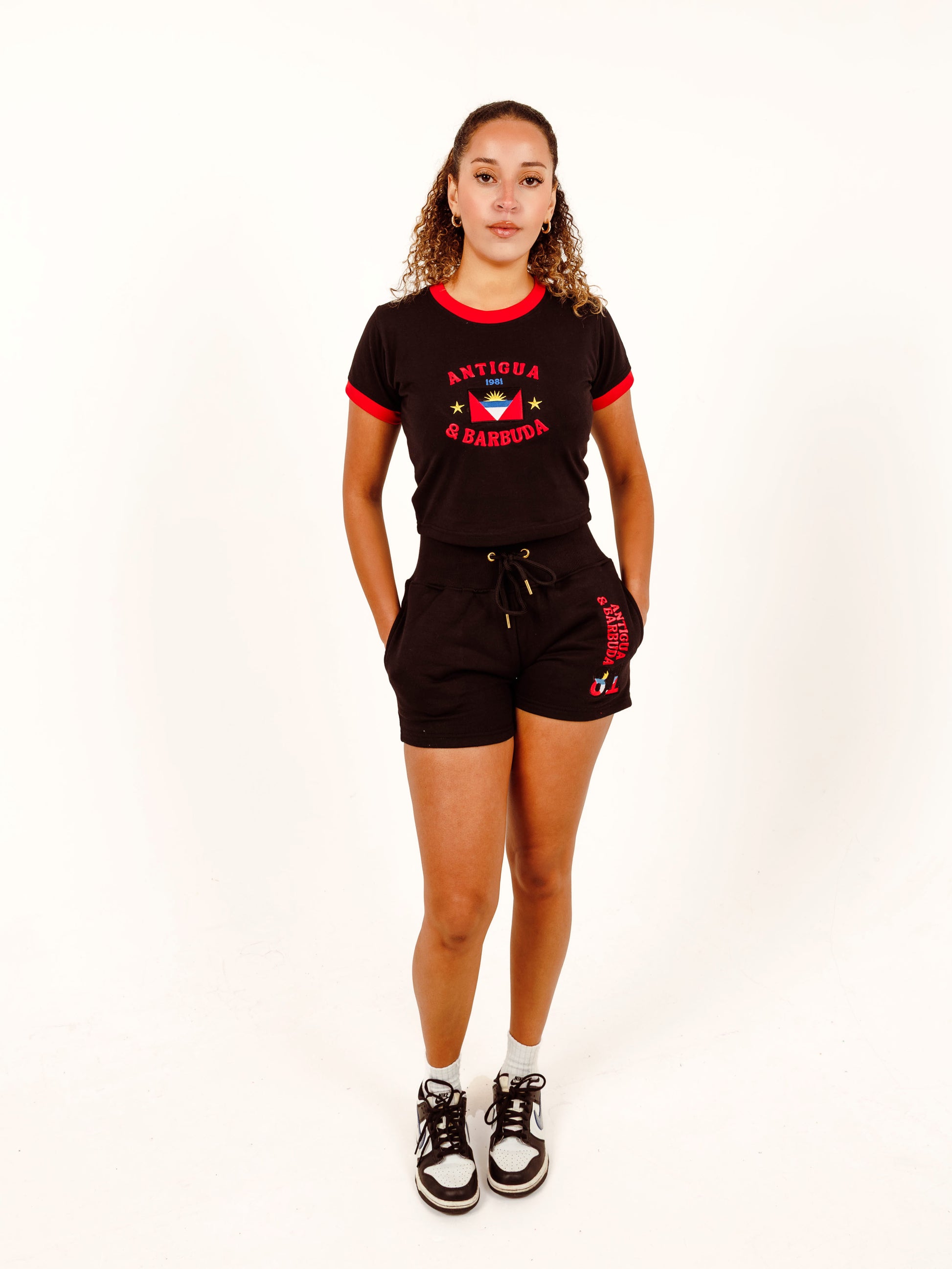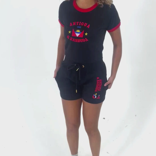 These Antigua and Barbuda Shorts are a fun and fashionable piece, featuring a playful cut and a unique embroidered design where the Antigua and Barbuda flag is cleverly incorporated into the year of independence. Perfect for showing off your pride in style, whether you're lounging or out and about.