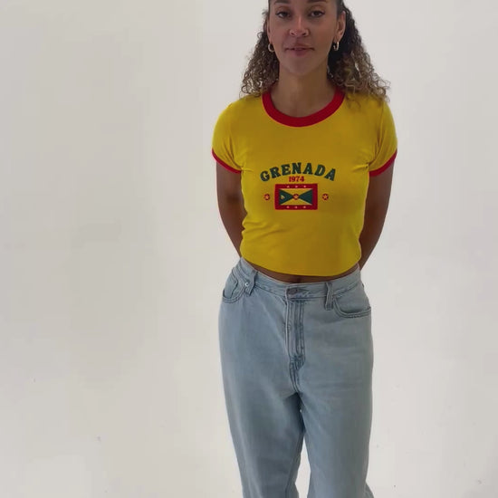 This Grenada Crop Top is a stylish addition to your wardrobe, featuring an embroidered Grenada flag and year of independence on the front.